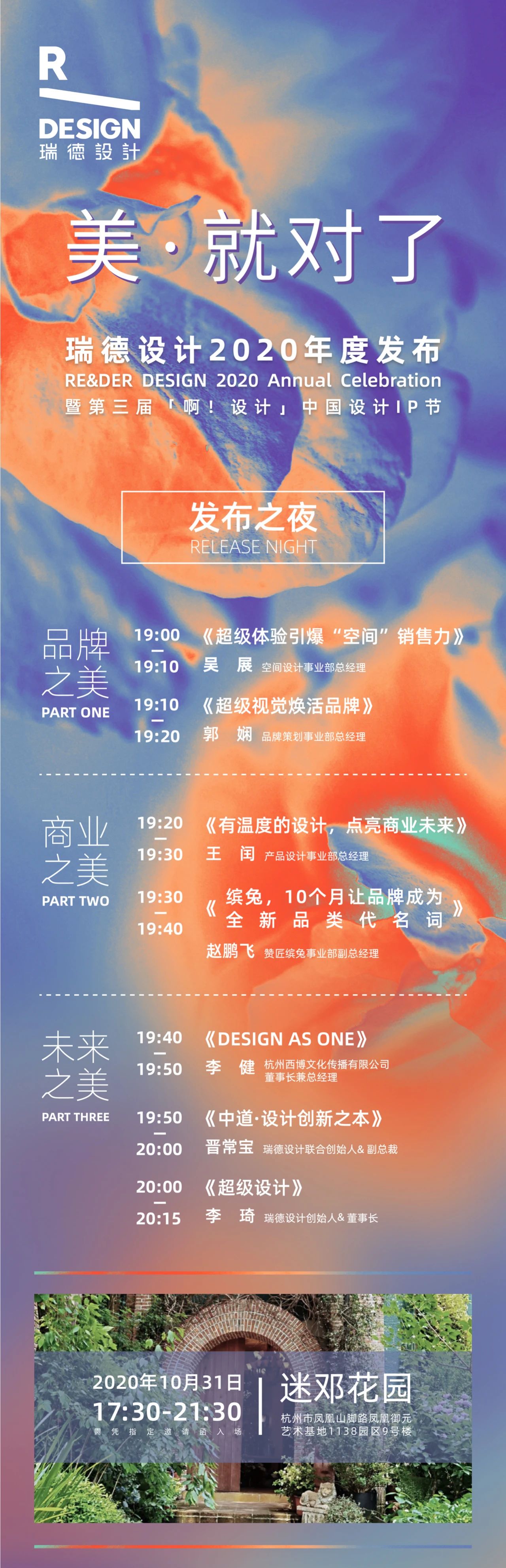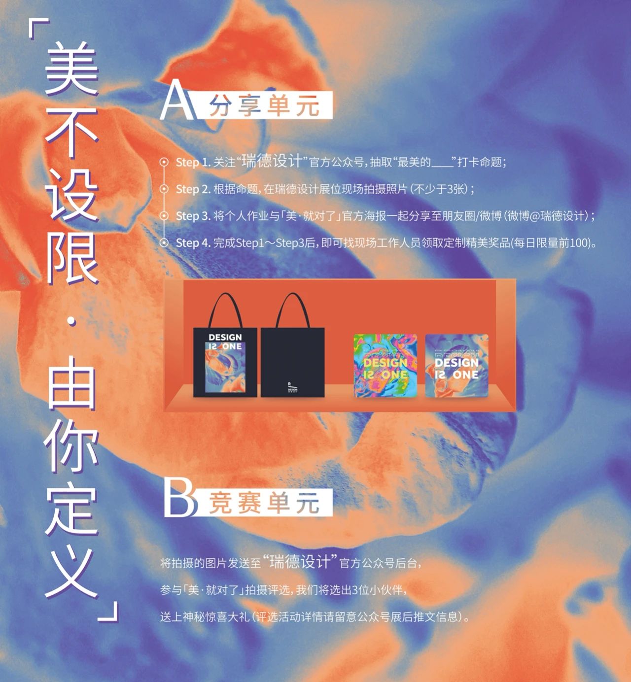 左手保溫杯,右手高腳杯一心只想躺平也為“翻滾吧!后浪”熱血沸騰吐槽著996,互道一聲“早安,打工人” 不要說年輕人是“矛盾綜合體”他們只是遵從內(nèi)心希望用自己的方式發(fā)現(xiàn)美、表達(dá)美、享受美 就!在!今!天!瑞德設(shè)計(jì)2020年度發(fā)布「美·就對(duì)了」展正式登陸ADM2020「Design As」向全城愛美、有趣、有態(tài)度的青年發(fā)出邀請(qǐng)在這個(gè)深秋赴一場美好的約 獨(dú)立昂揚(yáng)的颯美溫潤自信的甜美沒有誰應(yīng)該指導(dǎo)誰哪一種更美每個(gè)人都有自己獨(dú)一無二的光芒 在處處是標(biāo)簽和規(guī)則的世界學(xué)會(huì)“愛自己,毫不保留”與瑞德設(shè)計(jì)·出品自主品牌PINKTOP繽兔一起開啟真正的悅己生活 繼去年在ADM驚艷全場之后繽兔這次帶著全家福的新成員 PINKTOP繽兔×RiCO限量聯(lián)名美妝冰箱首次線下跟大家見面 天貓美妝冰箱品類NO.1與來自韓國的超人氣潮玩IP雙美聯(lián)合,美力爆棚全球限量500臺(tái),限定周邊免費(fèi)送! 除了愛美之心我們可能還天生帶有“植物屬性”房間的朝向最好是南衣物要到太陽底下晾曬才安心但是——如果遇到陰雨天呢 毛巾、貼身衣物、襪子這些從植物里來的平凡物件往往最能影響我們的家居體驗(yàn)、健康和心境母嬰速熱抑菌毛巾架,應(yīng)運(yùn)而生ADM2020現(xiàn)場首發(fā)! 以生活小家電理念全新定義電熱毛巾架品類同時(shí)兼具速熱、除濕、烘干、抑菌功能保持毛巾衣物干凈舒爽貼心守護(hù)母嬰健康 親身體驗(yàn)勝過千言萬語去玩、去看、去觸摸吧 零距離感受設(shè)計(jì)與科技融合的溫度盡情享受理想生活之美 當(dāng)代年輕人喜新也念舊他們對(duì)傳統(tǒng)文化有自己的理解也在用自己的語言表達(dá)和傳承 瑞德設(shè)計(jì)創(chuàng)意年禮品牌「喜抹」每年都會(huì)和不同的伙伴一起探索不斷打破大家對(duì)傳統(tǒng)年貨的固有印象創(chuàng)造出新的可能性 今年喜抹以“新年超級(jí)派對(duì)”為主題兩款齊上,雙喜臨門? 新年音樂會(huì)·彩虹扭扭茶禮盒? 新年DISCO·藕昔搖搖瓶禮盒 包裝靈感源自收音機(jī)、磁帶、唱片機(jī)、disco這些充滿年代記憶的物件和場景以一種嶄新的樣貌將往日重現(xiàn)新潮又復(fù)古,大膽而浪漫 沉浸其中瞬間被“派對(duì)”的狂歡氣氛點(diǎn)燃而隔壁是靜謐的“藝術(shù)館”動(dòng)靜結(jié)合,自由切換 富有禪意的靈動(dòng)空間藝術(shù)家打造的專屬設(shè)計(jì)古老厚重的“青金石”一步一景,如夢(mèng)似幻 打破設(shè)計(jì)界限藝術(shù)館生活館在這里合而為一有創(chuàng)意、靈感、美也有對(duì)當(dāng)下生活的映照 藝術(shù),來源于生活清晨的咖啡、夜晚的舞會(huì)卸下一天忙碌后的精心梳妝你一定能看見自己熟悉的那種日常 生活是自己的對(duì)美的定義也是不必在乎他人的眼光“你眼中的美,就是美” 美不設(shè)限,由你定義完成趣味互動(dòng)打卡分享即可獲贈(zèng)定制精美禮品最重要的是通過游戲啟發(fā)對(duì)美的思考 現(xiàn)場更有ADM粉絲專享福利繽兔人氣新品“小仙盒”年度設(shè)計(jì)母嬰速熱抑菌毛巾架展期間不定時(shí)免費(fèi)抽送! 10.29-11.02浙江展覽館(展位號(hào):G18)「美·就對(duì)了」命題已開放,等你來定義! ??前 方 高 能 預(yù) 告?? 10月31日 17:30-21:30瑞德設(shè)計(jì)2020年度發(fā)布之夜將于杭州【迷鄧花園】隆重舉辦共同見證設(shè)計(jì)對(duì)商業(yè)的驅(qū)動(dòng)力量 解讀當(dāng)下,預(yù)測未來