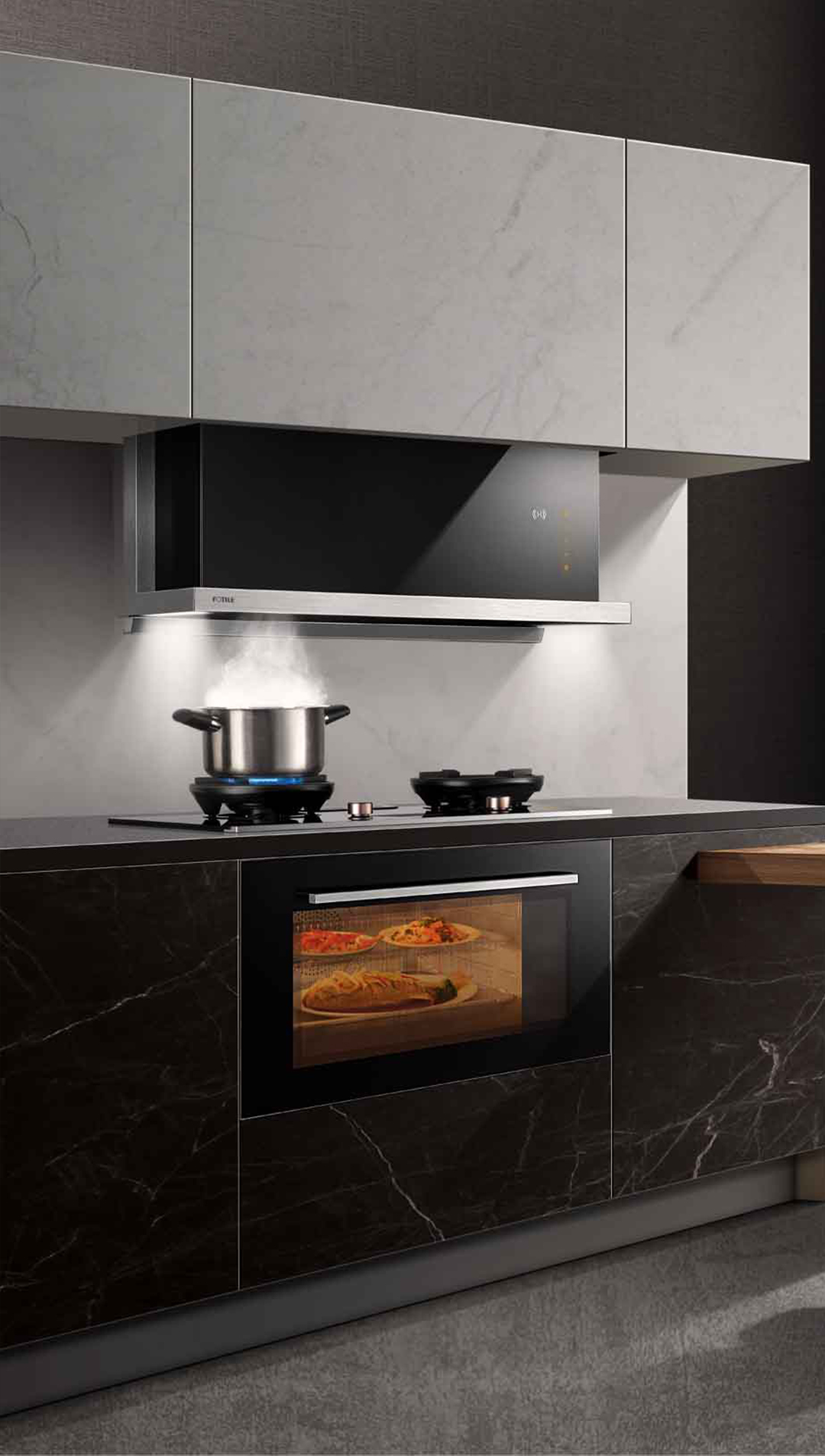煙機(jī)未啟動(dòng)時(shí),機(jī)身上升隱匿無(wú)形,融于吊柜,渾然一體,輕松匹配多種廚房風(fēng)格;啟動(dòng)時(shí),機(jī)身下降立現(xiàn)強(qiáng)悍動(dòng)力,貼近煙源,猛火爆炒不跑煙;頂吸式進(jìn)口風(fēng)設(shè)計(jì),順油煙升騰之勢(shì)直吸直排,兩檔高度舒心調(diào)節(jié)。創(chuàng)新解決傳統(tǒng)油煙機(jī)5大痛點(diǎn),通過(guò)全隱升降、垂直近吸,讓你的廚房云煙凈隱,爆炒無(wú)憂。