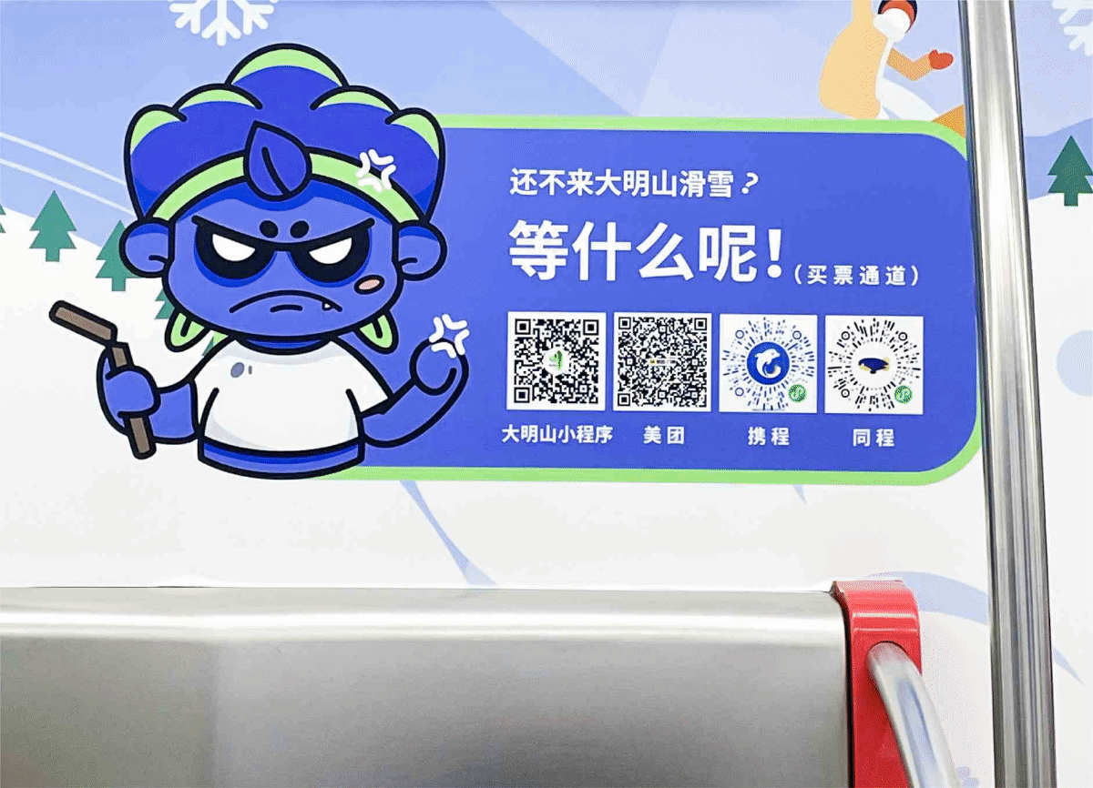 年前,波克化身滑雪教練于杭州地鐵一號(hào)線車(chē)廂內(nèi),開(kāi)啟了一次特殊的冰雪之旅。車(chē)廂內(nèi)隨處可見(jiàn)的趣味細(xì)節(jié)設(shè)計(jì),自帶強(qiáng)力社交BUFF,激發(fā)用戶的分享欲,促進(jìn)了品牌和產(chǎn)品的有效傳播。品牌策劃設(shè)計(jì)團(tuán)隊(duì)從項(xiàng)目設(shè)計(jì)到落地,幫助大明山風(fēng)景區(qū)完成了品牌力與傳播力的雙重升級(jí)。