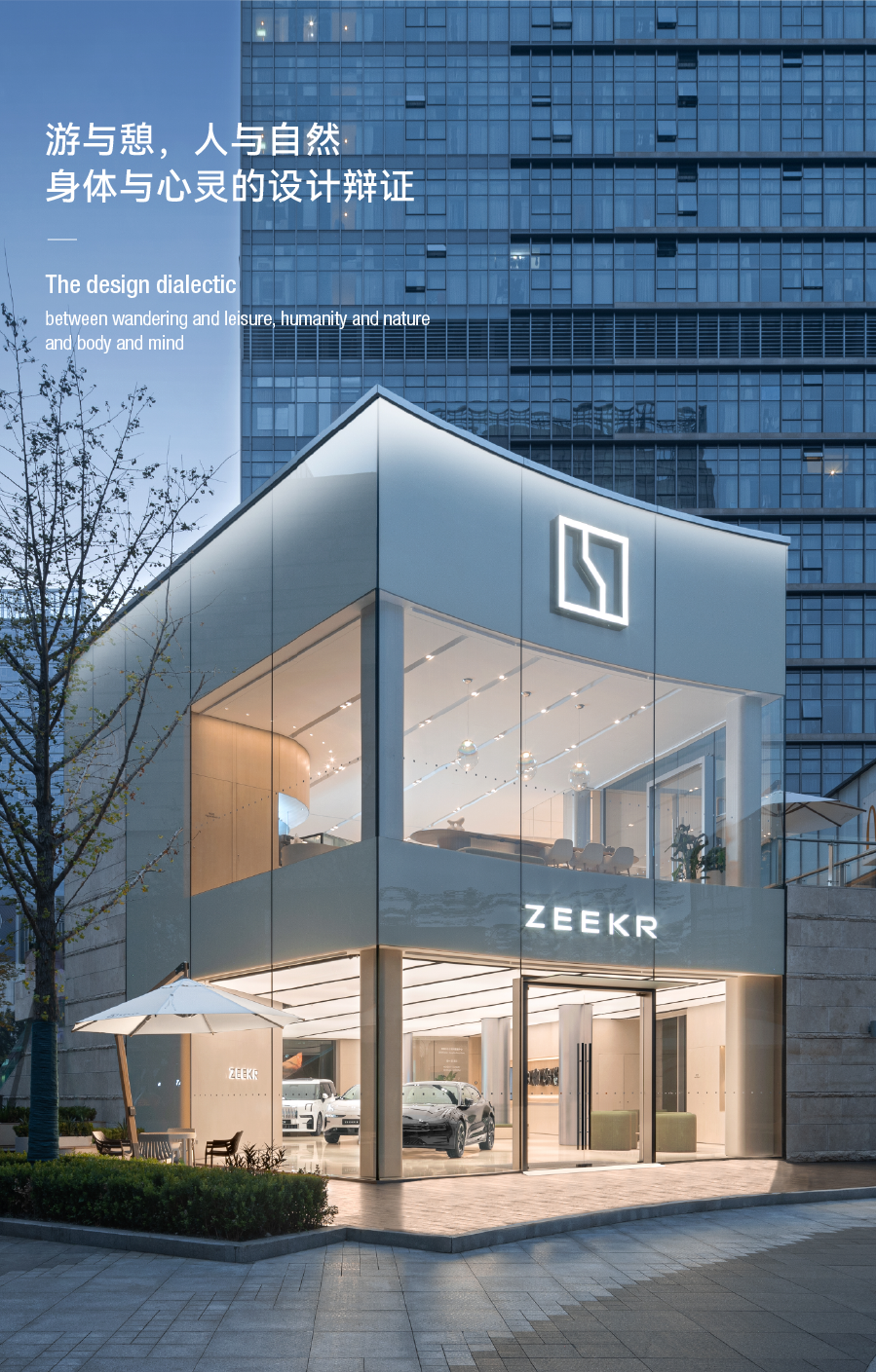 秉承“零邊界,不設(shè)限”極氪品牌理念,彰顯60%極氪元素、30%極氪風(fēng)格、10%杭州代表性在地文化,以AIDMA為基結(jié)合用戶MOT研究,延展融合、溫度、自然、探知之體驗(yàn),被定位為本項(xiàng)目的概念落點(diǎn)。瑞德設(shè)計(jì)希望,這個(gè)新型汽車(chē)零售空間,能夠衍生出「無(wú)界」的空間生態(tài):在為消費(fèi)者創(chuàng)造非凡的購(gòu)物旅程的同時(shí),滿足零世代科技駕駛愛(ài)好者圈層的社交需求,給予當(dāng)代城市青年歸屬感,傳遞品牌與消費(fèi)者之間、用戶與用戶之間、車(chē)與世界的無(wú)邊界共創(chuàng),拓寬品牌的內(nèi)核與外延。