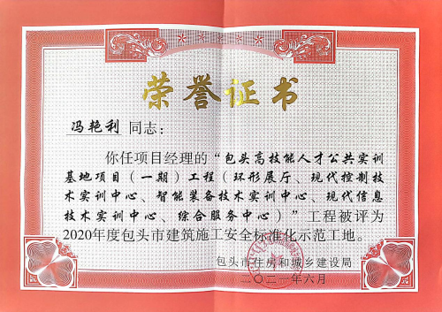 實(shí)訓(xùn)基地項(xiàng)目先后獲評(píng)中冶安全文明標(biāo)準(zhǔn)化工地、內(nèi)蒙古綠色建筑工地、“中施企協(xié)綠色建造評(píng)價(jià)”二星等多個(gè)安全文明類(lèi)獎(jiǎng)項(xiàng),同時(shí)在2020年7月份組織的中國(guó)二冶集團(tuán)內(nèi)蒙古自治區(qū)片區(qū)“安全文明標(biāo)準(zhǔn)化”觀摩活動(dòng)中獲得當(dāng)?shù)卣c集團(tuán)公司的一致好評(píng)。