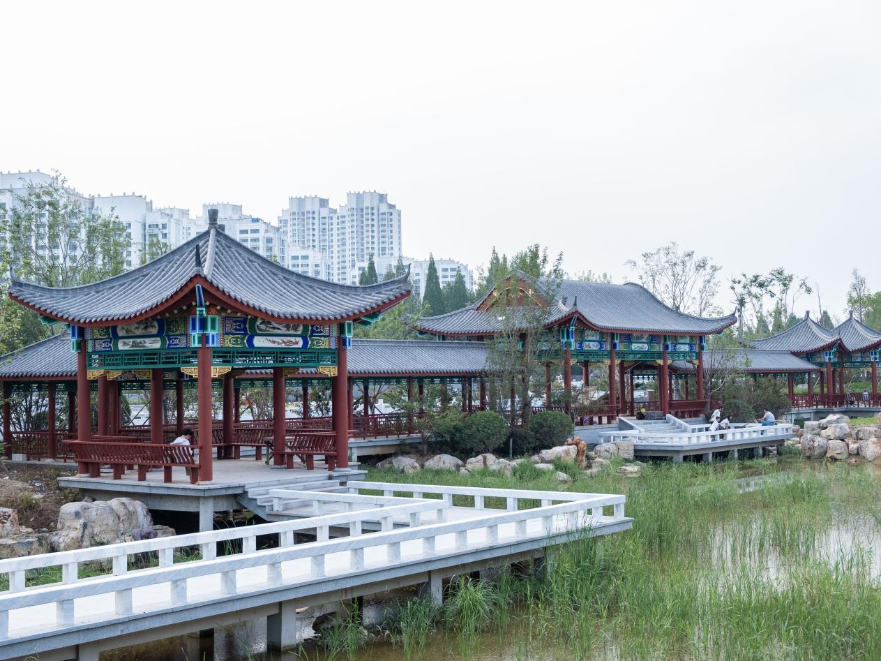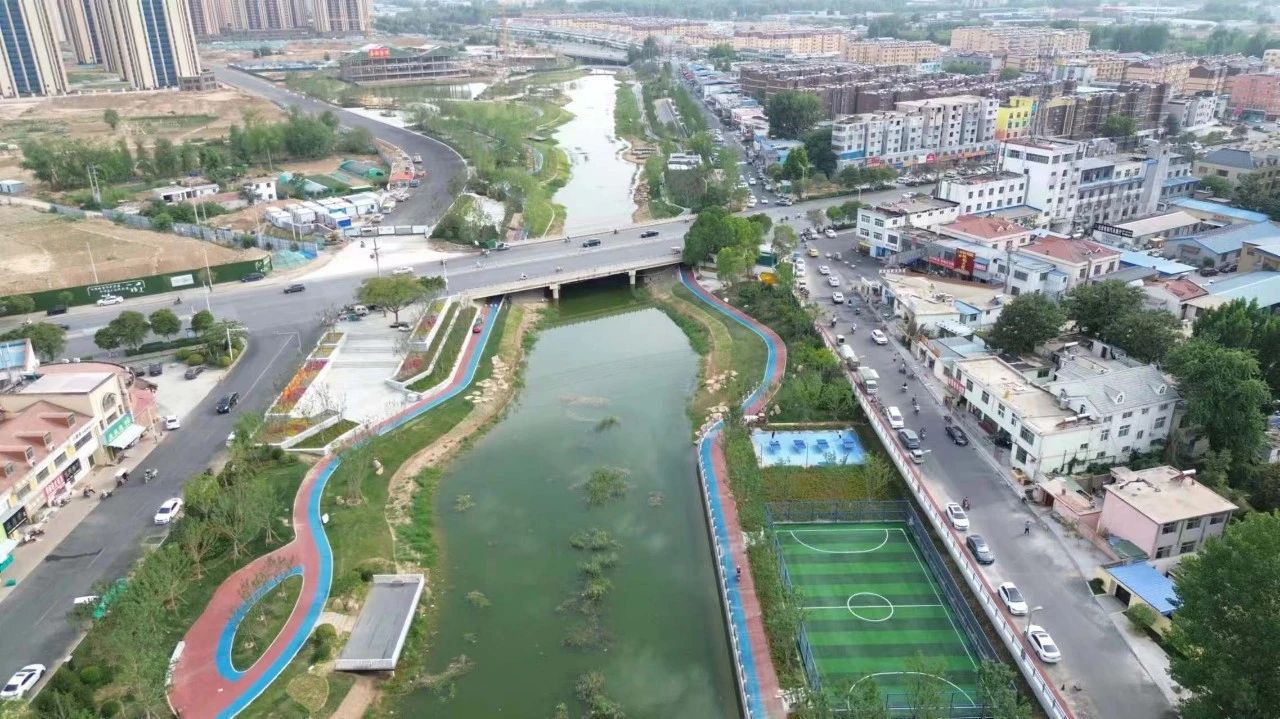 一年的建設(shè)周期里,中國二冶精心組織施工力量,科學(xué)安排施工流程,多工種協(xié)同作業(yè),一環(huán)緊扣一環(huán),建成多處景觀廊架、親水平臺、休閑廣場;新增及拆重建橋梁5座;改建行洪擋墻2.5公里,行洪能力由20年一遇提升至50年一遇;建設(shè)沿河步道7.2公里;沿河種植荷花、睡蓮等水生植物15萬株;新增綠化面積6萬余平方米,構(gòu)建3.6公里城市景觀,生物多樣性明顯增加,水生態(tài)持續(xù)穩(wěn)定向好。