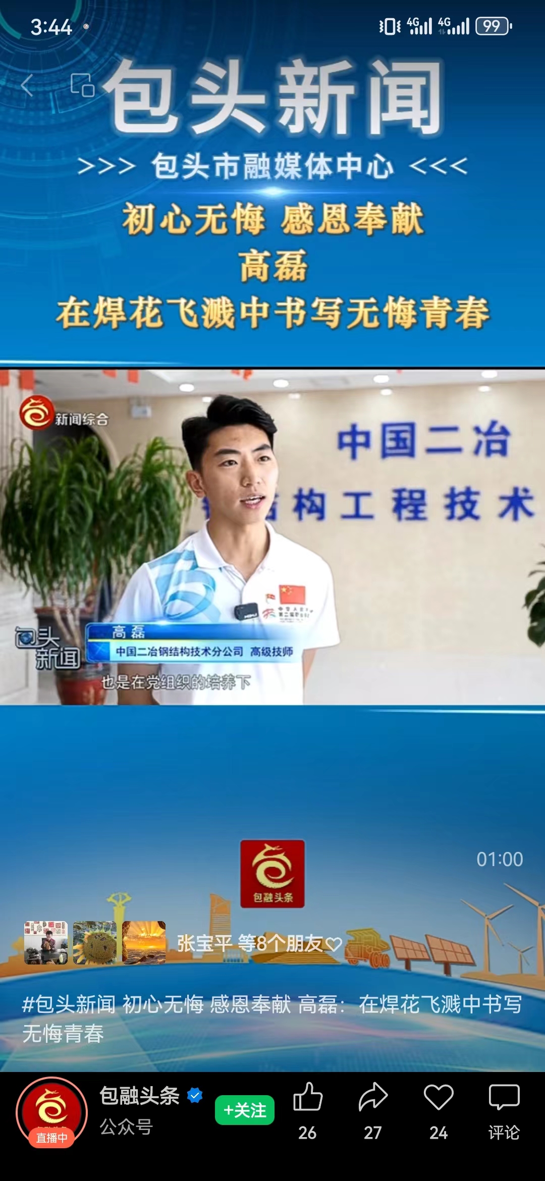 7月1日,包頭新聞報(bào)道中國二冶青年職工高磊。